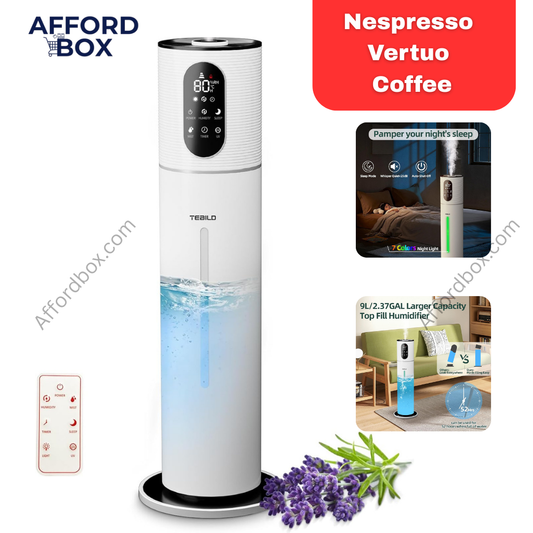Tebild - Humidifier 9L Cool Mist – Top-Fill, Quiet, LED Nightlight, Remote Control