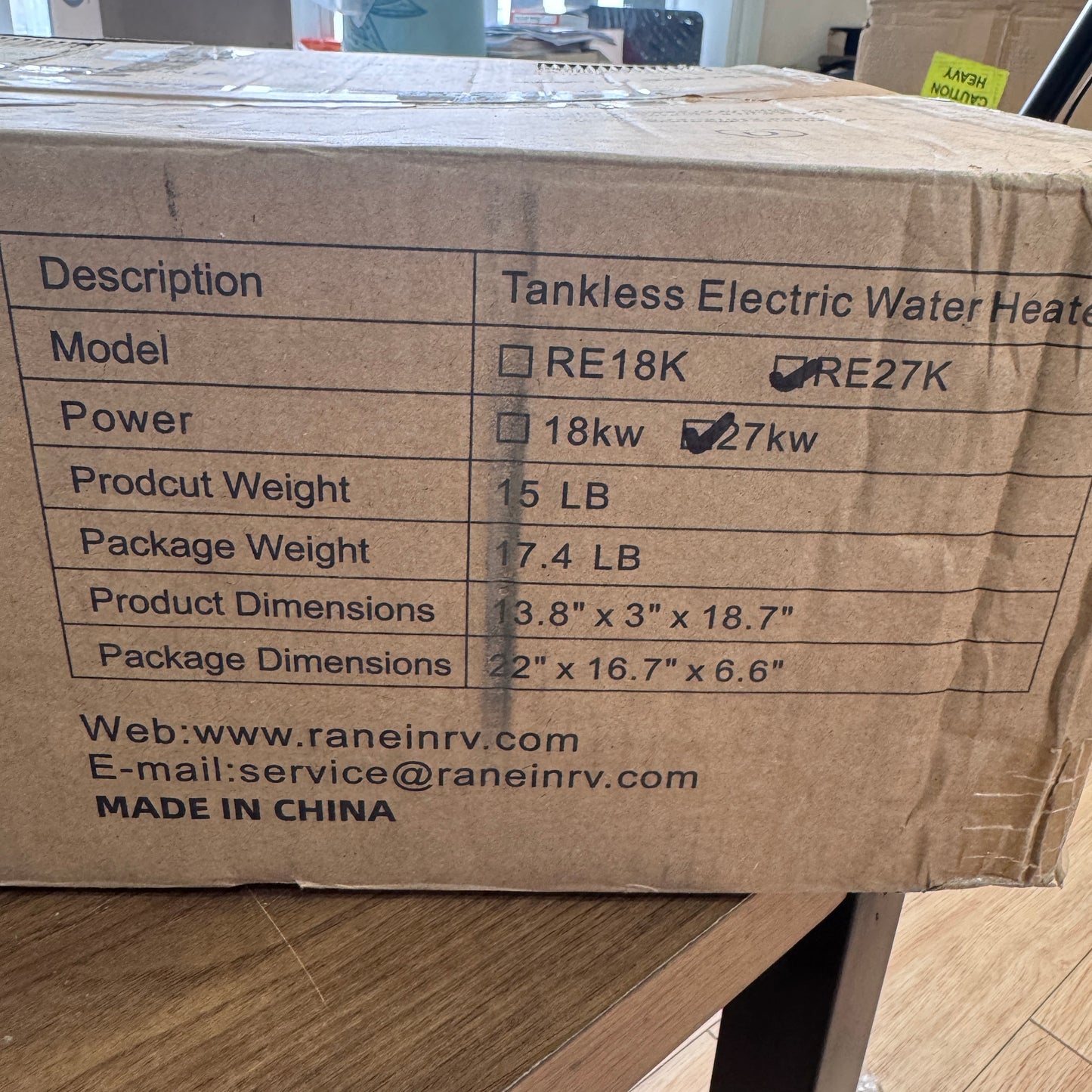 • Power Specs – 14 kW, 240V, requires 1×60A breaker, ½" NPT connection